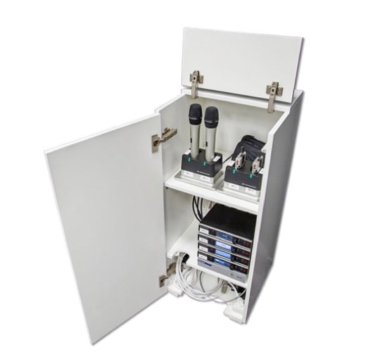 Pressonin innovatiiviset esityskalusteet on suunniteltu viimeistelemään tilat tai pöydät siten, että liitäntäkaapelit ja sähköpisteet ovat käden ulottuvilla helposti ja käytön jälkeen paikoillaan siististi. Kalusteet ovat joko kiinteästi asennettavia tai liikuteltavia.